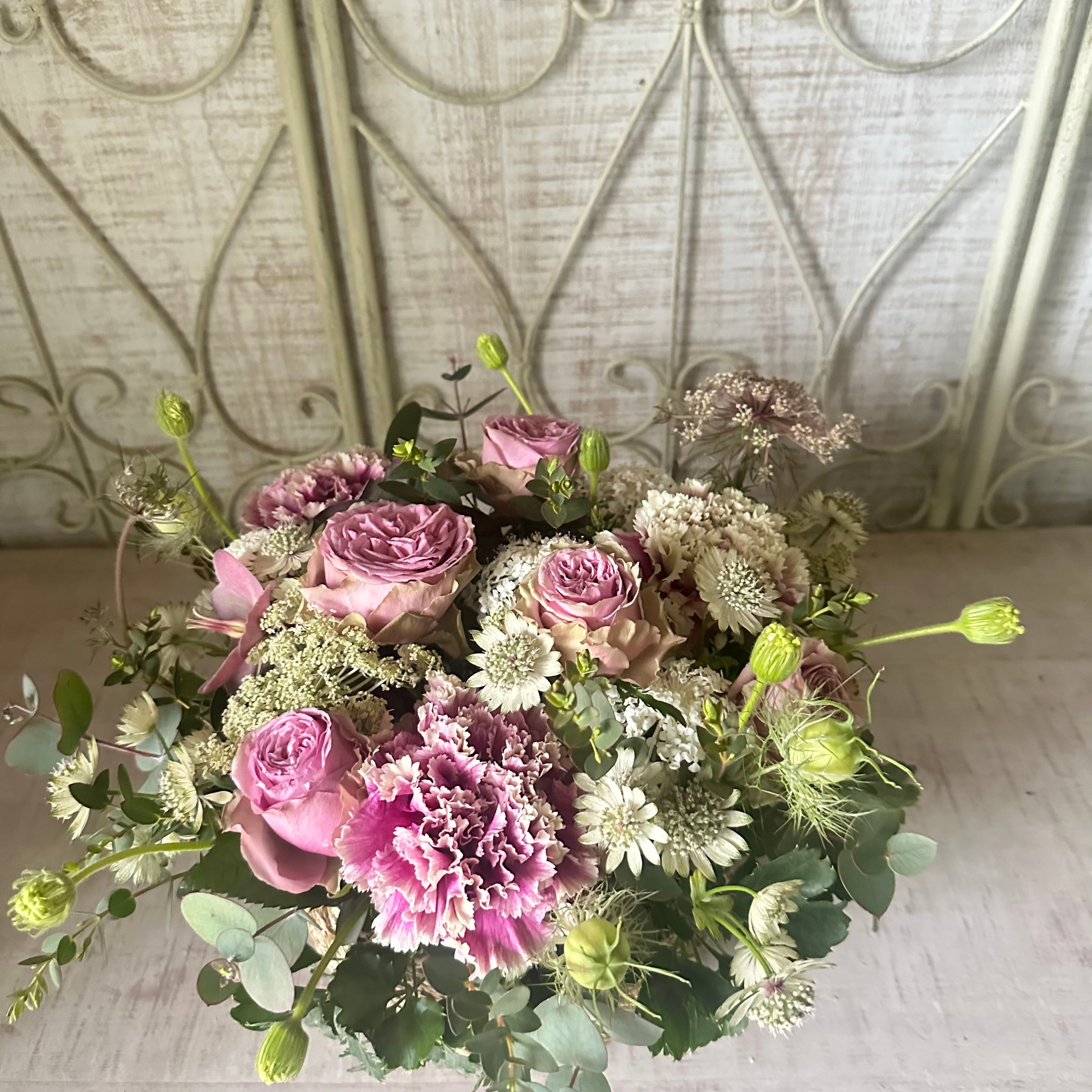 ①pretty ピンク系 大人かわいい雰囲気(お花の種類・お色はお任せとなります)